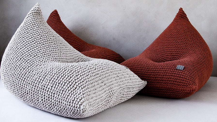 Chunky knitted SET bean bag & bolster footrest | TERRACOTTA