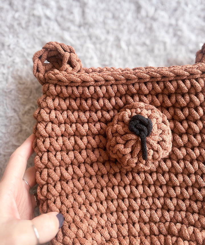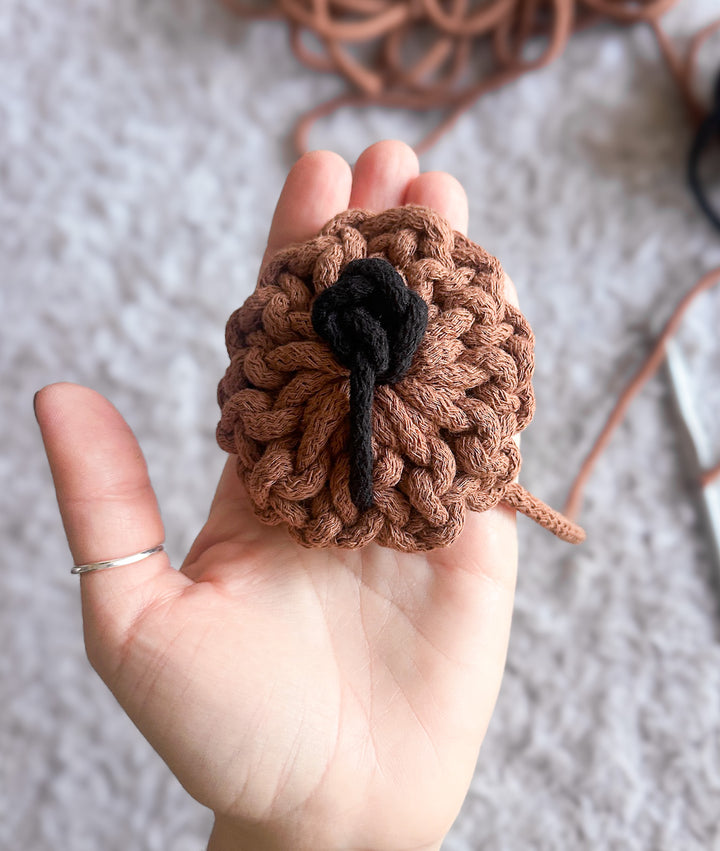 – Yarn used: BY YOU 5mm Cotton Cord (Cinnamon) + a small amount of black cord for the nose